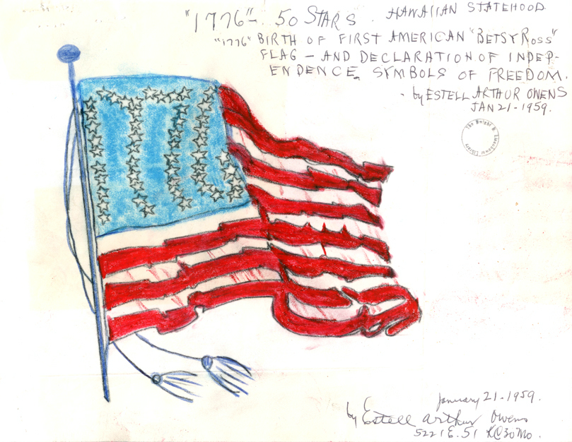 Flag design accompanying Executive Order 10834, 8/21/1959 [DDE’s Records as President, Official File, Box 370, OF-102-C American Flag (7); NAID #18494807]